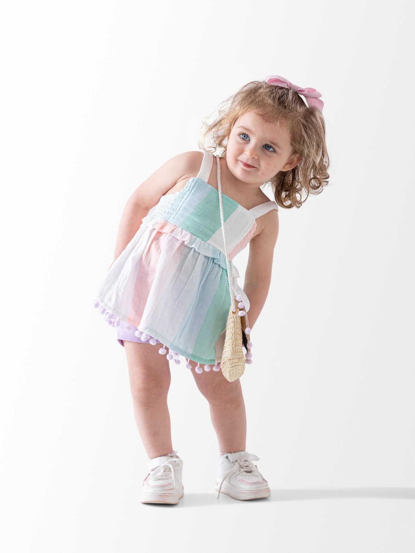 Get your little one ready for any occasion with this adorable Colorful Dress with Bag. Featuring a vibrant purple color, this dress will surely make your baby stand out. Available in sizes ranging from 3 months to 24 months, this dress is perfect for any growing baby. The matching bag adds the perfect finishing touch to this must-have dress.