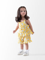 "Add a pop of sunshine to your little one's wardrobe with our Flower Short Set. This adorable set includes a yellow top with a delicate floral print and matching shorts. Available in sizes 3-24 months, it's perfect for any occasion. Shop now and dress your baby in style!"