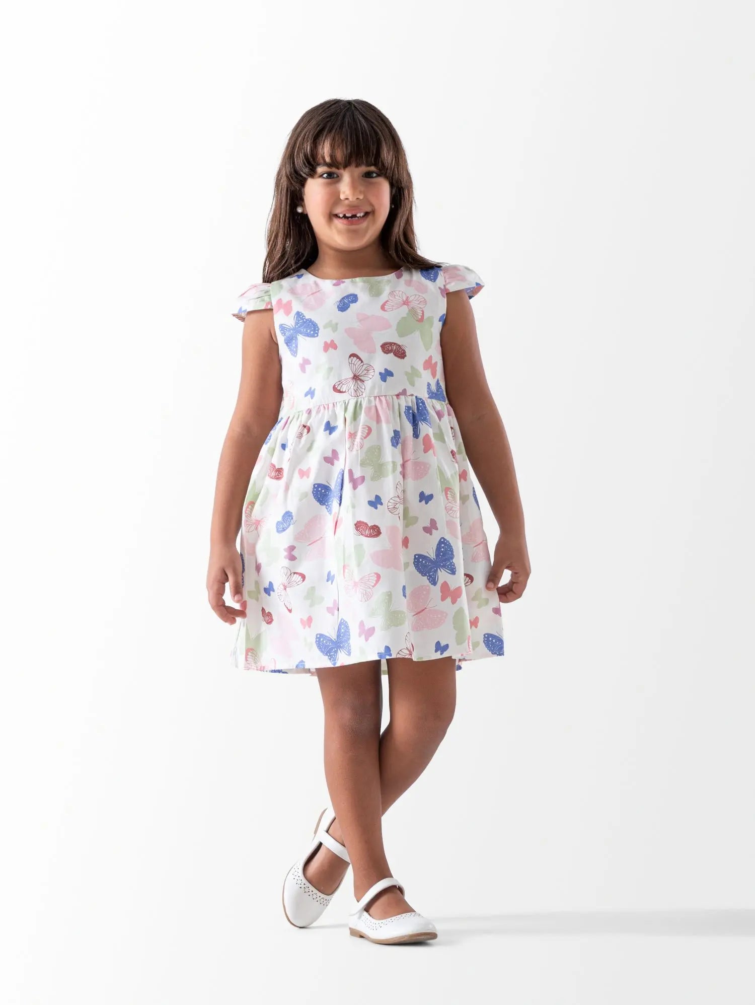 Introducing our beautiful Butterfly Dress, perfect for any occasion. This dress features a stunning butterfly print in a charming shade of pink. Available in sizes 5-9, it's the perfect addition to your little one's wardrobe. Dress her up in this adorable piece and watch her spread her wings with confidence and style.