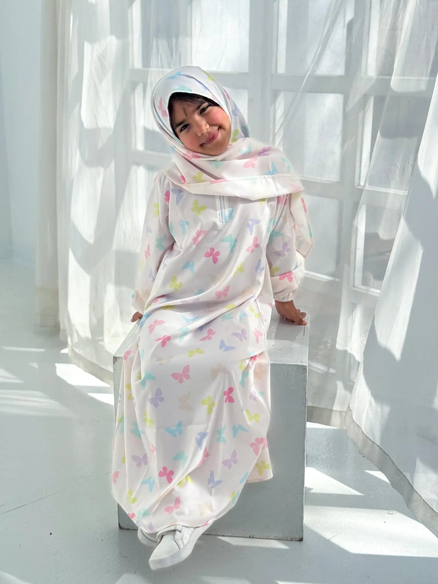 Celebrate the spirit of Ramadan with our Colorful Butterfly Isdal. Made with soft and breathable fabric, it features a beautiful lavender color and a vibrant butterfly design. Available in sizes 2-14, this Isdal is perfect for adding a touch of elegance to your Ramadan customs. Don't miss out on this must-have piece for your wardrobe this season.