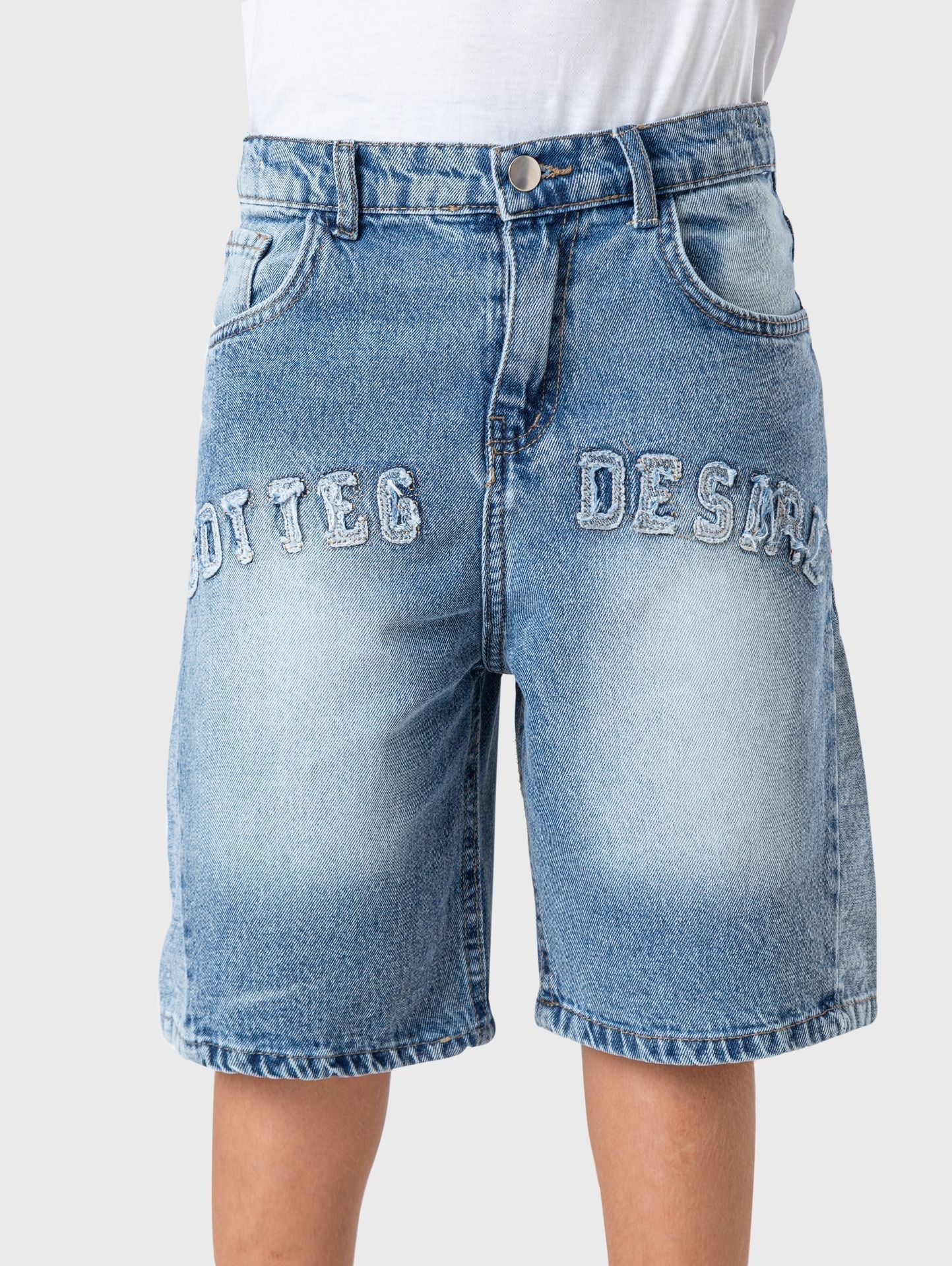 ,14Introducing our versatile and stylish Jeans Shorts, perfect for any casual occasion. Crafted in a classic medium blue color, these shorts are a must-have for your wardrobe. Available in sizes 8-14, our shorts offer a comfortable and flattering fit for all body types. Upgrade your summer look with these trendy and functional Jeans Shorts.
