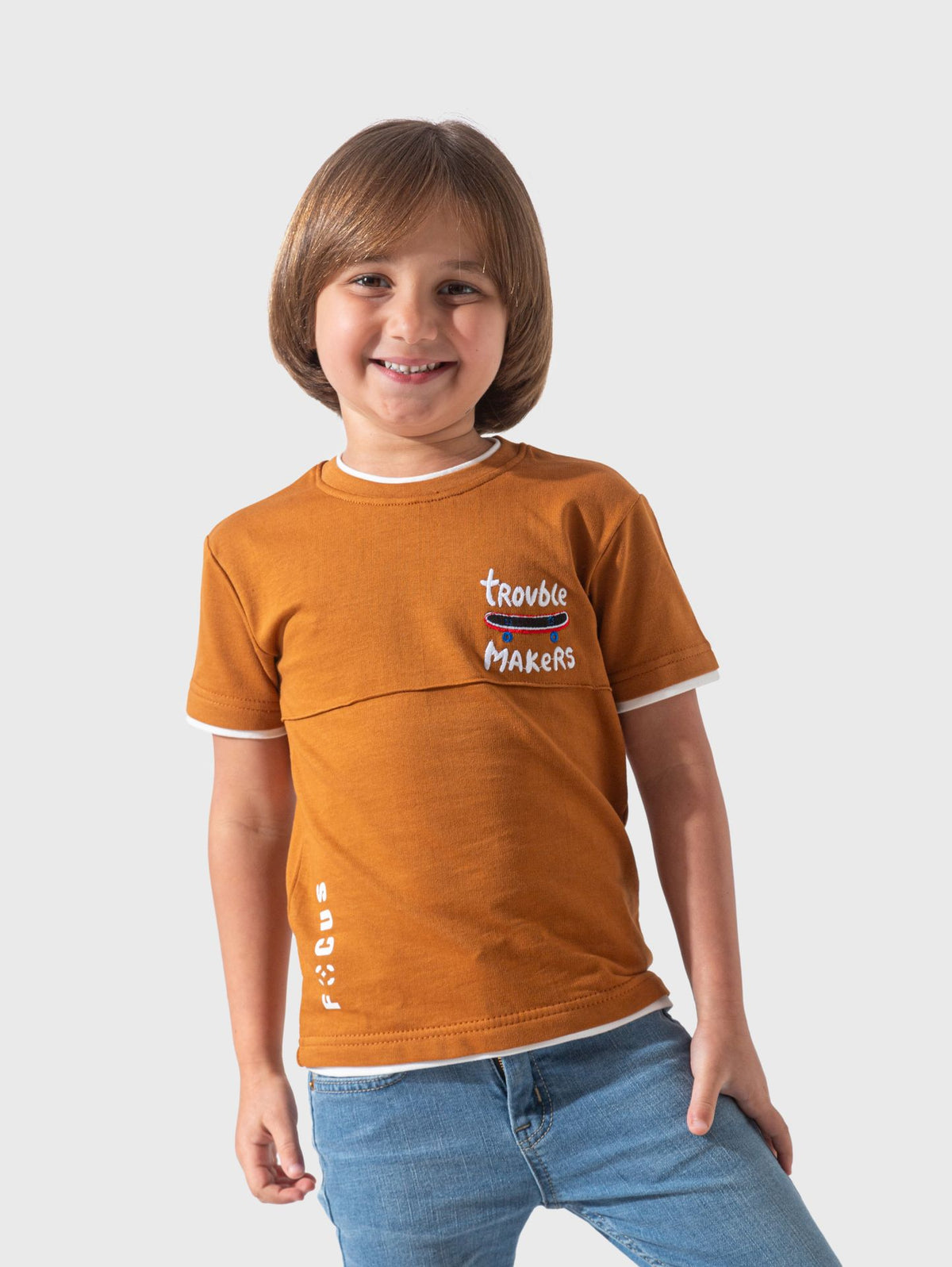 Introducing our new Trouble Makers T-Shirt, perfect for adding a touch of edginess to your wardrobe. Made with soft, breathable fabric, this top comes in a stylish camel color. Available in sizes 2, 4, 6, and 8, this versatile piece is a must-have for any fashion-forward individual. Make a statement and grab yours today!
