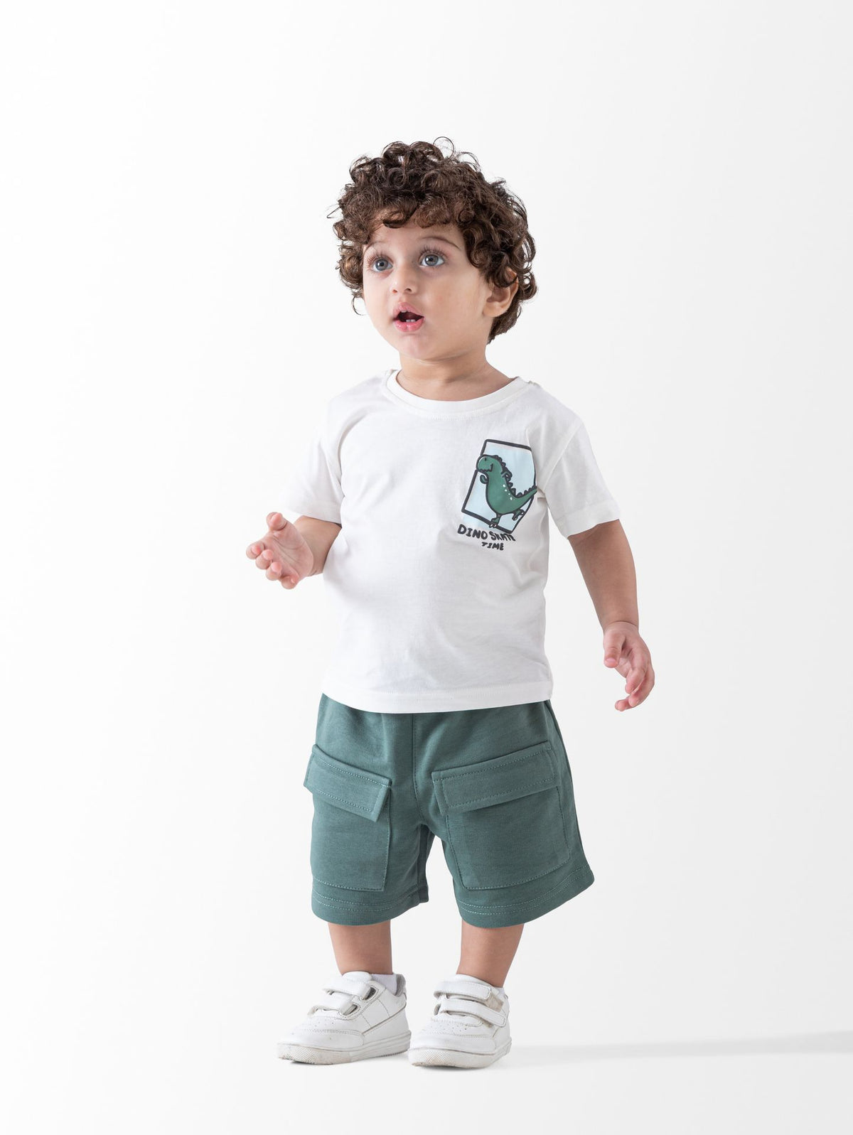 Introduce some prehistoric fun to your little one's bedtime routine with our Dino Summer Pyjama! Made with soft and breathable fabric, this Off-White pyjama features adorable dinosaur prints. Available in sizes 6 Months to 24 Months, it is perfect for keeping your baby cool and comfortable during warm summer nights. Get ready for some roarsome dreams with our Dino Pyjama!