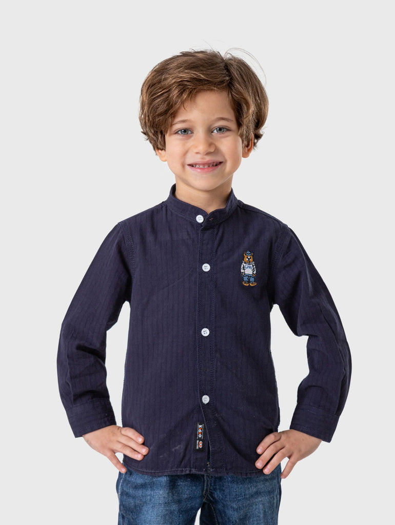 Dress your little boy in this adorable Navy Bear Shirt! Made from high-quality fabric, this shirt features a charming bear print that your child will love. It comes in sizes 2-7 to fit a range of ages. Perfect for any casual occasion, this Bear Shirt is a must-have for your little one's wardrobe.