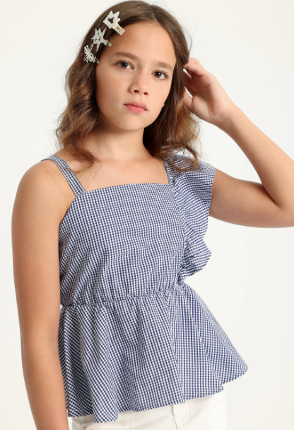 This stylish Checks Blouse for girls is the perfect addition to any wardrobe. The classic navy color adds a touch of sophistication, while the fun checkered print adds a playful twist. Available in sizes 4,5,6,8, and 10, this blouse is sure to be a favorite for any little fashionista. Pair it with jeans or a skirt for a cute and versatile look.
