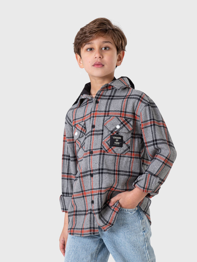 Introducing our stylish Checks Shirt for boys! This classic design in cool grey color will elevate any outfit. Available in sizes 4 to 14, this shirt is the perfect addition to your little one's wardrobe. Made with high-quality fabric for comfort and durability. Don't miss out on this must-have piece for your little man!