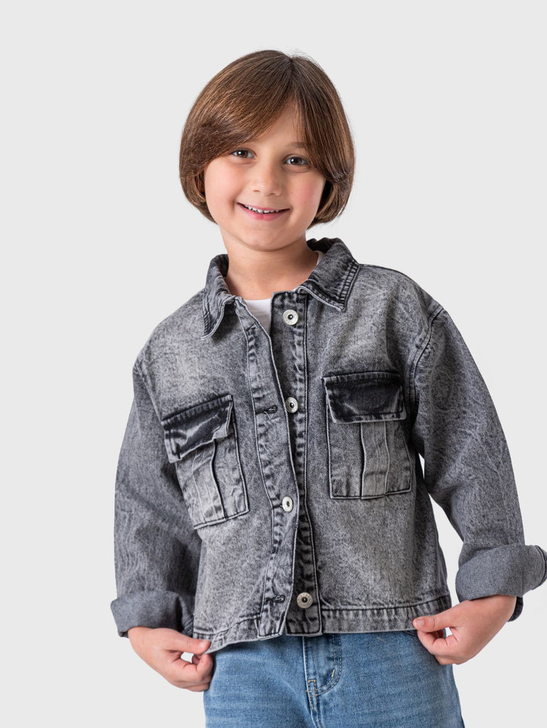 Look stylish and cool with our Grey Jeans Jacket. This versatile jacket is the perfect addition to your wardrobe. Available in sizes 8 to 13, it offers a comfortable and flattering fit for everyone. Perfect for any casual or dressed up look, this jacket is a must-have for any fashion-forward individual. Get yours now!
