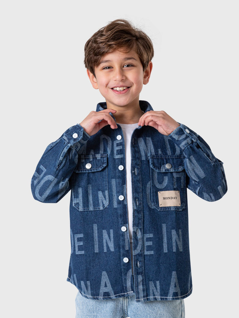 "Upgrade your little one's wardrobe with this stylish Dark Blue Jeans Shirt for boys. Made with high-quality denim fabric, this shirt is both comfortable and durable. Available in sizes 4-14, it is perfect for any growing boy. Pair it with their favorite jeans for a casual yet trendy look."