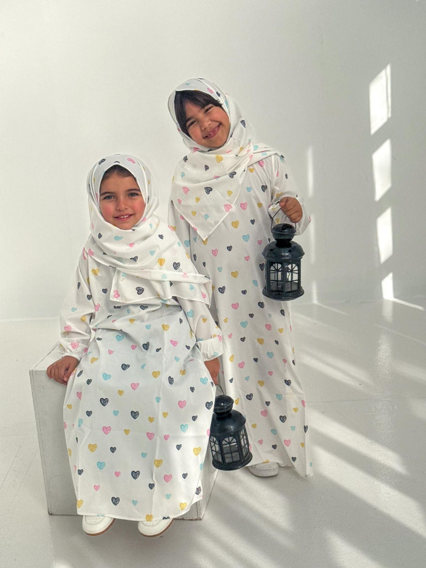 Celebrate Ramadan in style with our Small Heart Isdal. This traditional garment is perfect for honoring the customs of the holy month. Made with high-quality white fabric, it offers a comfortable and modest fit. Available in sizes 2-14, it is suitable for all ages. Add this beautiful Isdal to your wardrobe and embrace the spirit of Ramadan.