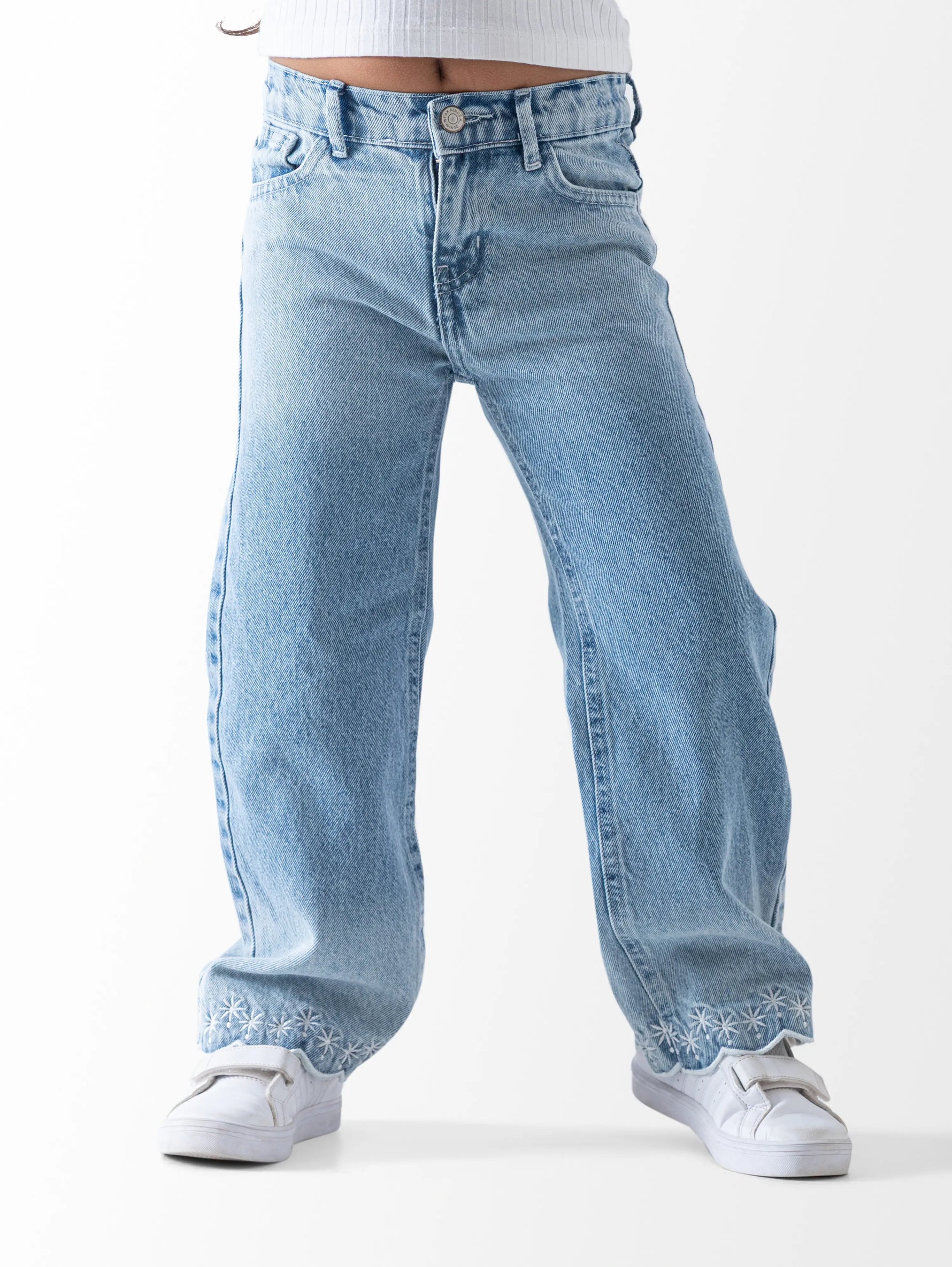 Introducing our stylish and versatile Wide Leg Jeans Pants, perfect for any casual or dressy occasion. These jeans feature a flattering wide leg design and are made from high-quality denim for a comfortable fit. Available in a classic Medium Blue color and a range of sizes including 8, 9, 10, 11, 12, and 13. Elevate your denim game with these must-have jeans.